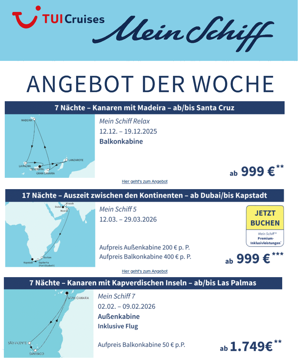 Entdecke hier die besten Kreuzfahrtangebote der Woche